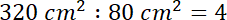 Pole 2 prostokąta jest 4 razy większe.