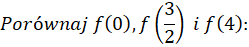 Oblicz wartość funkcji na końcach przedziału, czyli dla 0 i 4: