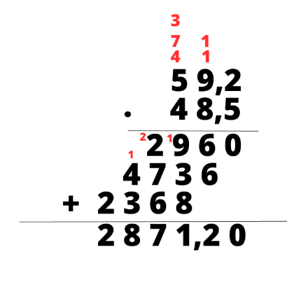 Mnożąc sposobem pisemnym, należy przemnożyć każdą liczbę znajdującą się na górze zapisu przez liczby na dole. Wyniki mnożenia zapisuj pod kreską, zaczynając od miejsca pod liczbą, przez którą mnożyłeś. Jeśli wynik jest dwucyfrowy, zapisz cyfrę jedności pod kreską, a cyfrę dziesiątek dodaj do następnego wyniku mnożenia. Następnie wykonaj dodawanie i przesuń przecinek o odpowiednią ilość miejsc. W tym przypadku po przecinku znajdują się dwie cyfry, więc w wyniku także muszą znajdować się dwie cyfry.