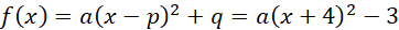 Funkcja nie posiada miejsc zerowych, więc odczytamy współrzędne wierzchołka paraboli: