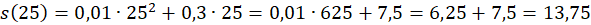 Podstaw prędkość w metrach na sekundę do wzoru i oblicz wartość, jaką przyjmuje dla 25: