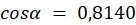 W tym zadaniu musisz obliczyć, ile wynosi kąt α, korzystając z tablic wartości funkcji trygonometrycznych, wiedząc, że cosα = 0,8140.