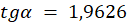 W tym zadaniu musisz obliczyć, ile wynosi kąt α, korzystając z tablic wartości funkcji trygonometrycznych, wiedząc, że tgα = 1,9626.