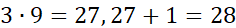 28:9 = 3 reszta 1