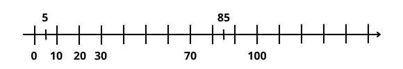 Zaznacz w odpowiednich miejscach: 5, 70, 85, 100.