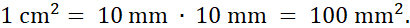 1 cm = 10 mm, więc 1 cm2 = 100 mm2.