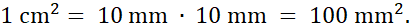 1 cm = 10 mm, więc 1 cm2 =100 mm2.