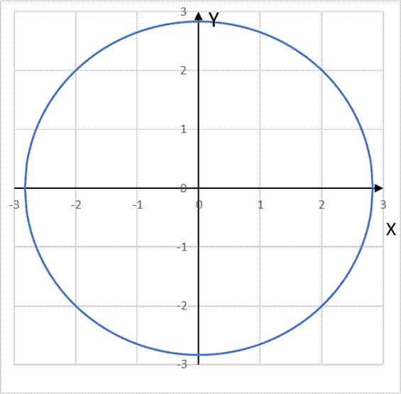 Okrąg, którego środek znajduje się w początku układu współrzędnych i promieniu r > 0 jest zbiorem wszystkich punktów na płaszczyźnie, których współrzędne (x, y) spełniają równanie: