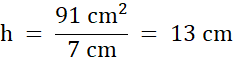 Policz wysokość równoległoboku, jeśli ma on pole równe 91 cm2 i jeden z boków równy 7 cm.