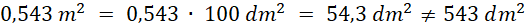 543 dm² ≠ 0,543 m²
