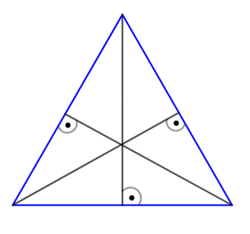 Wysokości w trójkącie równobocznym przecinają się w jednym punkcie.