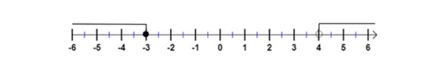 Zaznacz na osi liczby mniejsze lub równe -3 oraz liczby większe od 4. Pełne kółko oznacza, że liczba spełnia wskazany warunek, a puste kółko oznacza, że liczba nie spełnia wskazanego warunku.