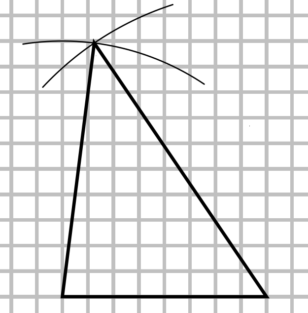 Kratka na rysunku ma bok długości . Narysuj bok długości i z jego końców poprowadź łuki o promieniach i . Punkt przecięcia tych łuków wyznaczy trzeci wierzchołek trójkąta. Przypomnij sobie, że trójkąt o wszystkich kątach ostrych to trójkąt ostrokątny.