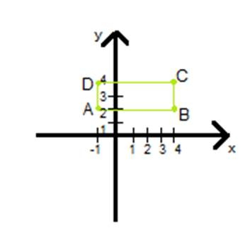 Pozycję punktu w układzie współrzędnych opisujemy dwoma zmiennymi: pierwsza wartość w nawiasie odpowiada wartości pozycji na osi poziomej x, a druga odpowiada wartości pozycji na osi pionowej y. W tym przypadku współrzędna musi zostać tak wybrana, aby odpowiednie odległości (boki prostokąta) zostały zachowane.