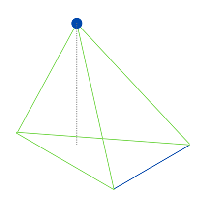 Nie musi być to ostrosłup prawidłowy, dlatego liczy się tylko to, aby zachowany był kształt podstawy – jakikolwiek trójkąt. Od kropki narysuj prostą prostopadłą do płaszczyzny podstawy ostrosłupa. Następnie dorysuj krawędzie ostrosłupa.