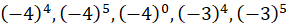 Potęgowanie to mnożenie podstawy tyle razy, ile określono w wykładniku. Parzysta potęga liczby ujemnej jest zawsze liczbą dodatnią, a nieparzysta potęga liczby ujemnej jest zawsze liczbą ujemną. Potęgowanie do zera, zawsze daje wynik 1. Oblicz wszystkie liczby, a następnie ułóż je w kolejności od największej do najmniejszej.