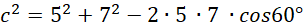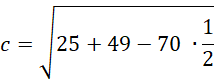W tym zadaniu musisz obliczyć długość trzeciego boku, jeśli pozostałe boki mają długość 5 i 7 oraz kąt γ ma miarę 60°.