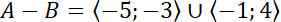 , czyli elementy, które są w zbiorze A i nie ma ich w zbiorze B. Uzyskane rozwiązanie zapisz w postaci sumy przedziałów.