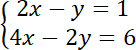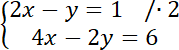 Zauważ, że po pomnożeniu pierwszego równania przez 2, lewa strona obu równań będzie taka sama, a prawa inna, więc podany układ równań nie będzie spełniony dla żadnej liczby rzeczywistej.