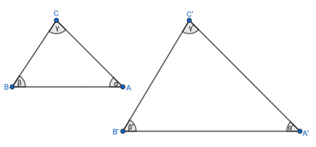 Oznacza to, że powyższe trójkąty są podobne z cechy KKK – odpowiadające sobie kąty mają równe miary.