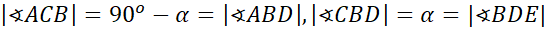 Suma miar kątów w trójkącie wynosi , więc: , oznacza to, że trójkąty ABC, ABD, AED, BED i BCD są podobne z cechy KKK.