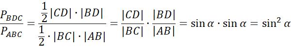 Udowodnij, że stosunek pól trójkątów BDC i ABC jest równy , jeśli dany jest trójkąt prostokątny ABC przedstawiony na rysunku.