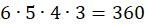 Pierwszy materiał jest wybierany spośród 6 kolorów. Drugi nie może być już w kolorze pierwszego materiału, więc jest wybierany spośród 5 kolorów. Trzeci nie może być taki sam jak materiał pierwszy i drugi, więc jest wybierany na 4 sposoby. Zaś czwarty materiał nie może być taki jak pierwszy, drugi i trzeci, więc jest wybierany z 3 kolorów.