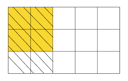 Zakreskuj cztery piąte prostokąta i zamaluj jedną trzecią z zakreskowanego fragmentu. Jaka część została zamalowana? Uzupełnij iloczyn.