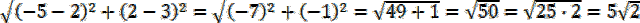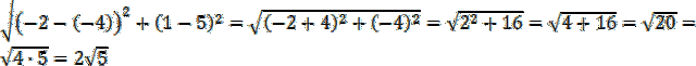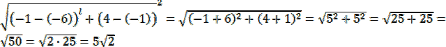 . W celu obliczenia odległości między punktami A(xa, ya) i B(xb, yb) skorzystaj z następującego wzoru: |AB| =