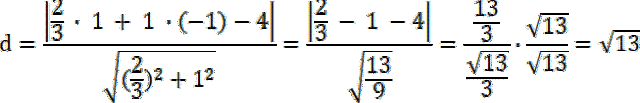 W pierwszej kolejności należy przedstawić równanie prostej w postaci ogólnej, a następnie skorzystać ze wzoru na odległość punktu C(x0, y0) od prostej l o równaniu ogólnym: Ax + By + C = 0, który wyraża się za pomocą wzoru: