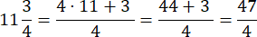 Wartość licznika w ułamku niewłaściwym: mianownik mnożymy przez liczbę całkowitą, a do otrzymanego wyniku dodajemy licznik: