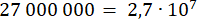 W tym zadaniu przedstaw liczbę 27 000 000 w notacji wykładniczej.