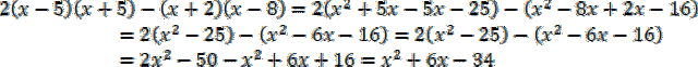 Wykonaj mnożenie sum algebraicznych (pomnóż każdy wyraz jednej sumy przez każdy wyraz drugiej sumy, a otrzymane iloczyny dodaj do siebie):