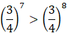 Gdy porównujesz potęgi o jednakowej podstawie mniejszej od 1, ale różnych wykładnikach, to większa będzie ta z mniejszym wykładnikiem.