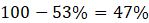 Dla wyniku 56% centyl wynosi 53, a więc oznacza to, że 53% uczniów osiągnęło wynik mniejszy bądź równy 56%. W takim razie wynik większy (czyli zgodnie z tabelą minimum 60%) osiągnęło: