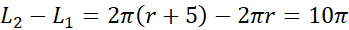 Na koniec odejmij od długości większego okręgu długość mniejszego.