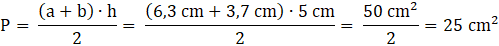 Po podstawieniu do wzoru pole wynosi 25 cm2.