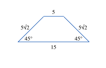 Jest to trapez równoramienny. By obliczyć boki, narysuj prostą będącą wysokością trapezu. Powstałe trójkąty ułatwią Ci wykonanie zadania, skorzystaj z własności trójkąta 45°, 45°, 90°.