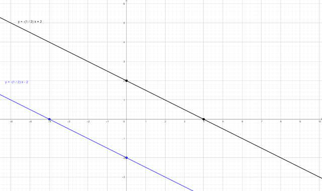 Wykonaj tabelkę, na górze podaj liczbę, którą podstawisz za x, aby wyliczyć y. Dzięki temu wyznaczysz współrzędne punktów, należących do wykresu funkcji liniowej. Zaznacz te punktu i przeprowadź przez nie prostą. Zrób to dla obu prostych. Układ jest sprzeczny, ponieważ proste są równoległe, więc się nie przecinają.