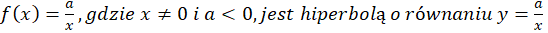 Wykres funkcji postaci przechodzi przez punkt (1, a), więc jeżeli a jest mniejsze od zera, to punkt ten leży w II ćwiartce. Zauważ, że jeżeli hiperbola leży w II ćwiartce, to leży też w IV.
