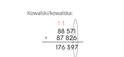 Oblicz, ile było osób o nazwisku Kowalczyk, a następnie wykonaj odejmowanie wyniku od sumy osób o nazwisku Kowalska/kowalski