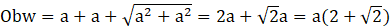 Wyznacz pole powierzchni opisanego trójkąta prostokątnego równoramiennego o obwodzie