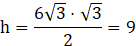Obliczamy długość boku tego trójkąta, a następnie jego wysokość ze wzoru