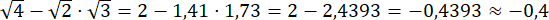 Oblicz wartość wyrażenia, korzystając z przybliżeń pierwiastków z dokładnością do drugiego miejsca po przecinku. Następnie zaokrąglij wynik do jednego miejsca po przecinku.