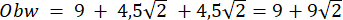 Wiedząc, że przeciwprostokątna trójkąta prostokątnego równoramiennego wynosi 9 cm, oblicz jego obwód.