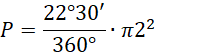 W tym zadaniu musisz obliczyć pole wycinka koła, którego promień wynosi 2, a kąt środkowy α wynosi 22 ͦ30’.