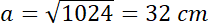 Wyznacz obwód kwadratu o polu 1024 cm2.
