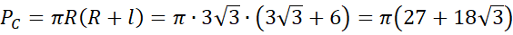 Oblicz pole powierzchni całkowitej stożka, jeśli walec o promieniu podstawy równym