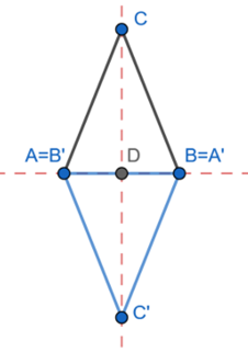 Narysuj figurę symetryczną względem środka podstawy do trójkąta ABC.