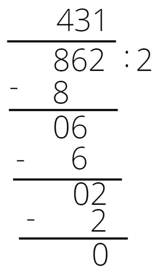 Sprawdź, ile razy mieści się pierwsza cyfra w dzielniku. Wynik zapisz nad kreską nad naszą cyfrą. Pomnóż zapisaną liczbę przez dzielnik i zapisz wynik pod pierwszą cyfrą. Zapisz pod tą liczbą kreskę i odejmij powyższe dwie liczby. Do uzyskanego wyniku dopisz kolejną cyfrę dzielnej i znowu sprawdź, ile razy mieści się ta liczba w dzielniku. Wynik zapisz nad kreską nad naszą cyfrą. Pomnóż zapisaną liczbę przez dzielnik i zapisz wynik pod drugą cyfrą. Zapisz pod tą liczbą kreskę i odejmij powyższe dwie liczby. Jeśli dzielna to liczba trzycyfrowa, to postępuj tak samo w wypadku trzeciej cyfry.